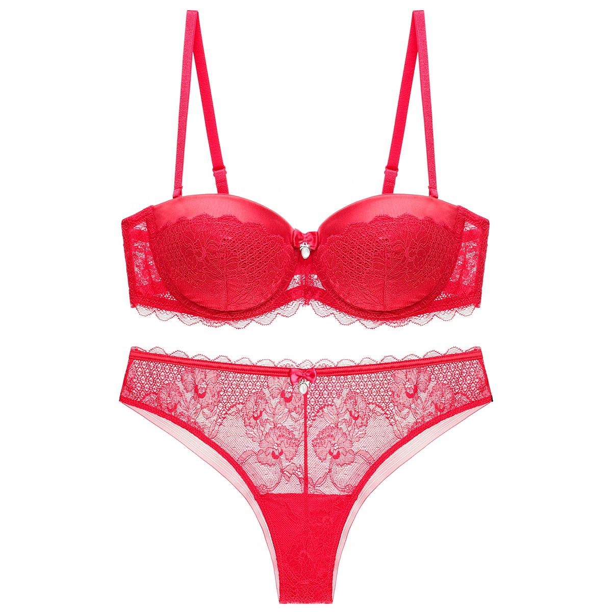 Hot-bán New pháp Ladies ánh sáng-miễn phí nửa-cup của áo ngực và Push-Up sexy đa năng đồ lót và tam giác phù hợp với